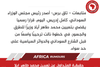 افريقيا ـ السودان تداولت وسائط إعلامية ومواقع التواصل الاجتماعي خلال الساعات الماضية أنباءً تفيد بتعيين السيد محمد طاهر إيلا وزيرًا…