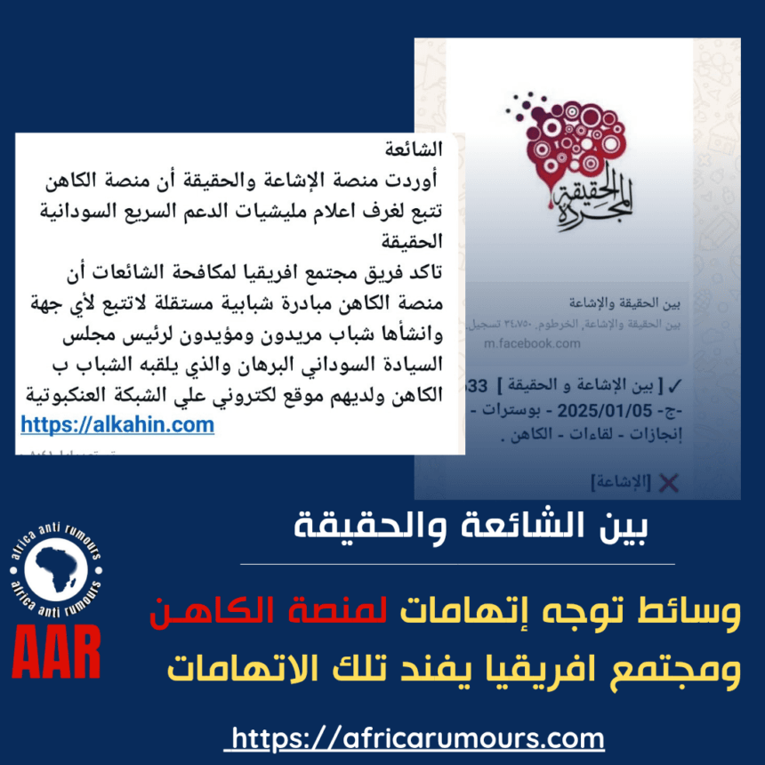 أوردت منصة الإشاعة والحقيقة أن منصة الكاهن تتبع لغرف اعلام مليشيات الدعم السريع السودانية