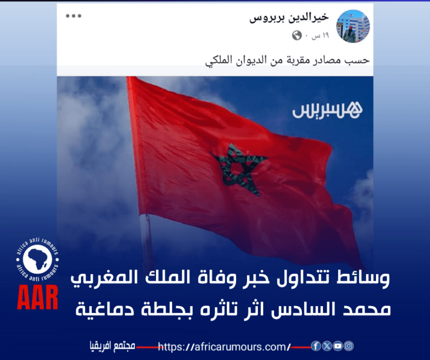 مجتمع افريقيا قام بالبحث والتقصي وتاكد تماما من عدم صحة الخبر المنشور وان الملك محمد السادس علي قيد الحياة وان مجموعات مناوئة اعتادت كل فترة علي نشر مثل هذه الاخبار المغرضة.