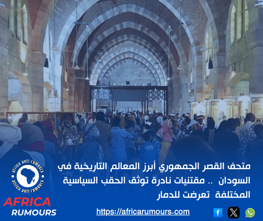 إفريقيا لمكافحة الشائعات > الأخبار > تقارير وتحقيقات > متحف القصر الجمهوري في الخرطوم أبرز المعالم التاريخية في السودان .. مقتنيات نادرة توثق الحقب السياسية المختلفة التي مرت بها البلاد منذ عام 1884 وحتى 2007.
