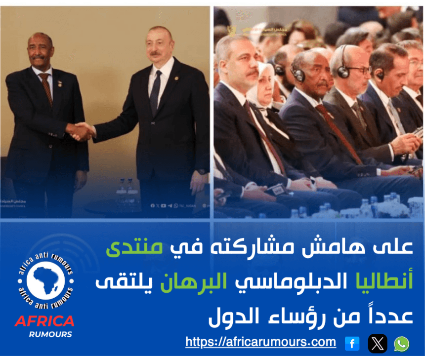 وكان رئيس مجلس السيادة الانتقالي الفريق أول الركن عبد الفتاح البرهان قد شارك في فعاليات منتدى أنطاليا الدبلوماسي في نسختة الرابعة، الذي إنطلقت أعماله أمس بمدينة أنطاليا التركية تحت شعار “استعادة الدبلوماسية في عالم منقسم” .