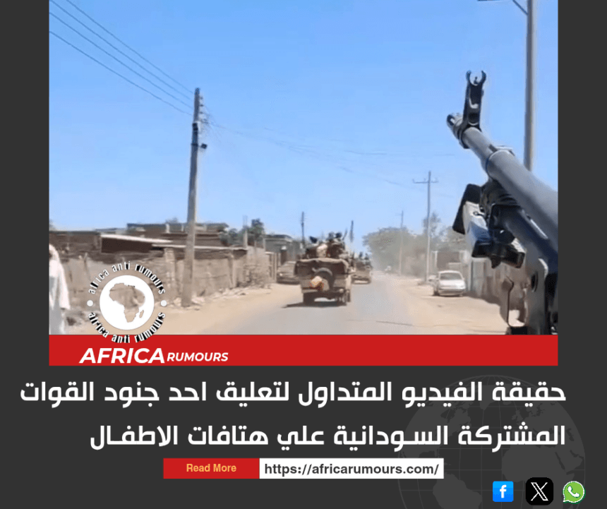 إفريقيا لمكافحة الشائعات > الأخبار > أخبار كاذبة > حقيقة الفيـديو المتـداول لتعليق احد جنود القوات المشتركة السودانية لهتافات اطفال اثناء تحرك القوات…