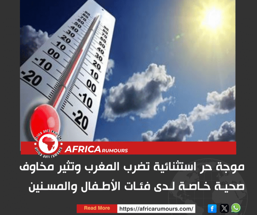 إفريقيا لمكافحة الشائعات > الأخبار > اخبار افريقيا > المغرب تشهد موجة حر إستثنائيةتجاوزت المعدلات الفصلية بفوارق كبيرة..وتثير مخاوف صحية خاصة لدى الفئات الهشة مثل الأطفال والمسنين..