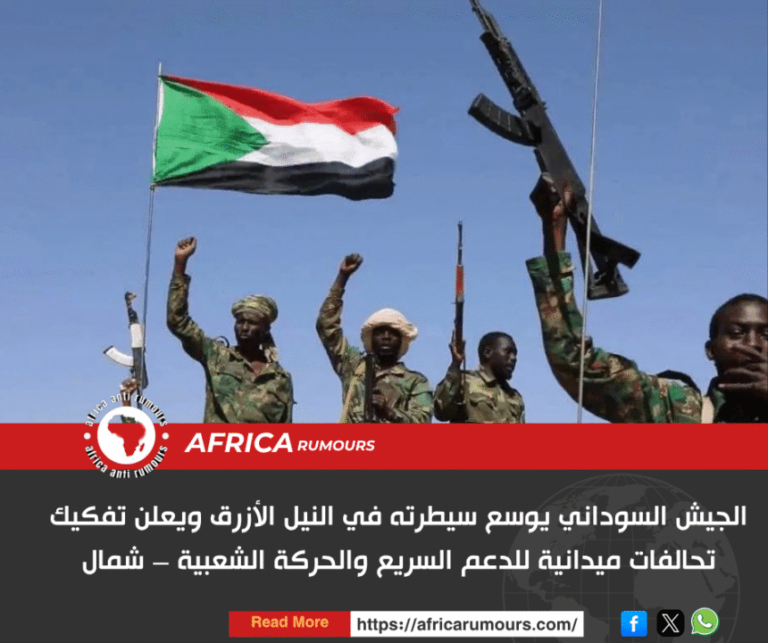 أعلن الجيش السوداني، الأربعاء، عن بسط سيطرته على مواقع جديدة في إقليم النيل الأزرق، شملت منطقتي بالدقو وملكن في محافظتي المابان وباو، بعد معارك ضارية ضد تحالف قوات الدعم السريع والحركة الشعبية – شمال بقيادة عبد العزيز الحلو.