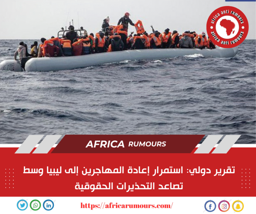 كشفت المنظمة الدولية للهجرة عن اعتراض 397 مهاجراً غير نظامي في البحر المتوسط خلال الفترة من 29 يونيو إلى 5 يوليو 2025، وإعادتهم إلى موانئ ليبية تشمل الخمس، الزاوية، طبرق، وطرابلس. وبذلك يرتفع عدد المهاجرين الذين أُعيدوا إلى ليبيا منذ بداية العام إلى 11,923 شخصاً، بينهم 394 طفلاً، وسط تصاعد المخاوف من الانتهاكات التي يتعرض لها هؤلاء داخل مراكز الاحتجاز الليبية.