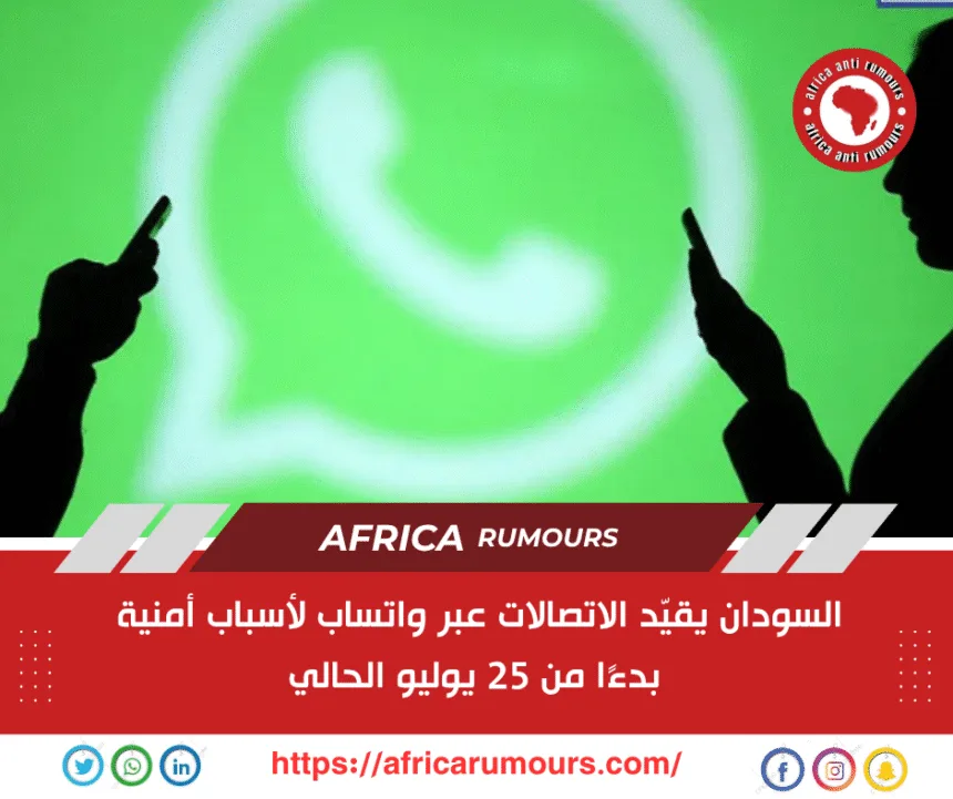 أعلن جهاز تنظيم الاتصالات والبريد في السودان عن قراره بتقييد خدمات المكالمات الصوتية والمرئية عبر تطبيق “واتساب” ابتداءً من يوم الجمعة الموافق 25 يوليو 2025 وحتى إشعارٍ آخر، في خطوة وصفها بأنها تهدف إلى مواجهة “المهددات الأمنية” وحماية “الأمن القومي والمصالح العليا للبلاد”.