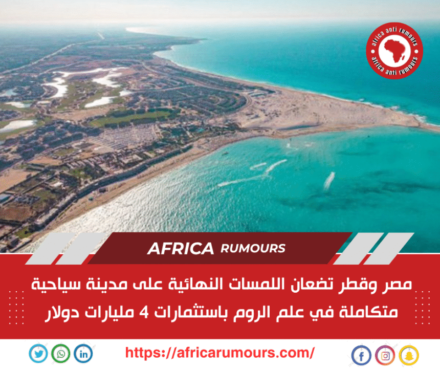 تقترب مصر وقطر من إبرام اتفاق نهائي لإطلاق مشروع سياحي ضخم في منطقة علم الروم بالساحل الشمالي، باستثمارات أولية تُقدّر بـ 4 مليارات دولار، وفقًا لما كشفته مصادر مطلعة لوكالة بلومبيرغ.