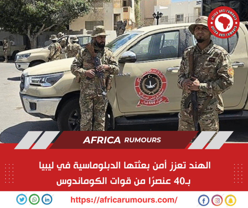 أعلنت السلطات الهندية نشر 40 عنصرًا من قوات الكوماندوس التابعة لشرطة الاحتياط المركزية، لتأمين سفارتها في العاصمة الليبية طرابلس، في خطوة تعكس اهتمامًا متزايدًا بضمان أمن البعثات الهندية في مناطق النزاع.
