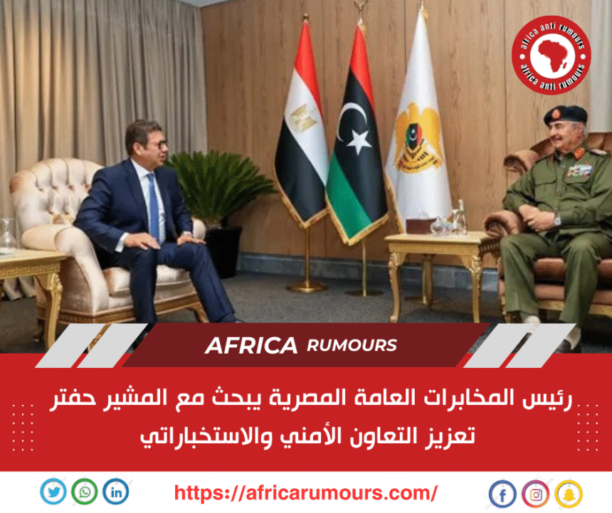 أجرى اللواء حسن رشاد، رئيس جهاز المخابرات العامة المصرية، زيارة رسمية إلى مدينة بنغازي الليبية، حيث التقى بالقائد العام للقوات المسلحة الليبية، المشير خليفة حفتر، في مقر القيادة العامة.