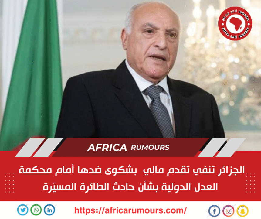 وكانت وسائل إعلام قد أفادت في وقت سابق بأن الحكومة الانتقالية في مالي رفعت دعوى قضائية ضد الجزائر، تتهمها بـ”العدوان” بعد إسقاط طائرة استطلاع عسكرية قالت إنها كانت تنفذ مهمة أمنية داخل الأراضي المالية.