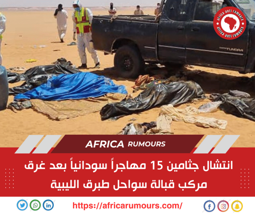إفريقيا لمكافحة الشائعات > الأخبار > اخبار افريقيا > انتشال جثامين 15 مهاجراً سودانياً بعد غرق مركب قبالة سواحل طبرق الليبية