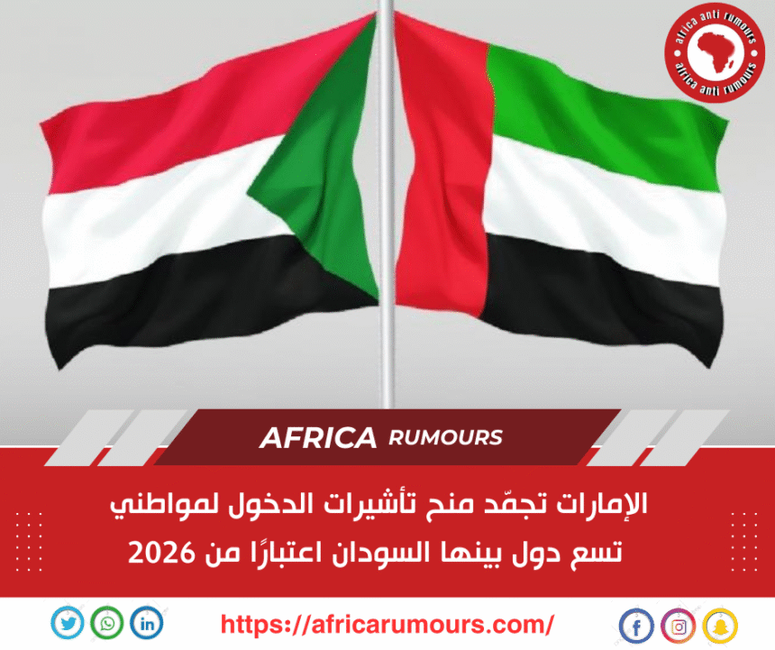 إفريقيا لمكافحة الشائعات > الأخبار > اخبار افريقيا > الإمارات تجمّد منح تأشيرات الدخول لمواطني تسع دول بينها السودان اعتبارًا من 2026