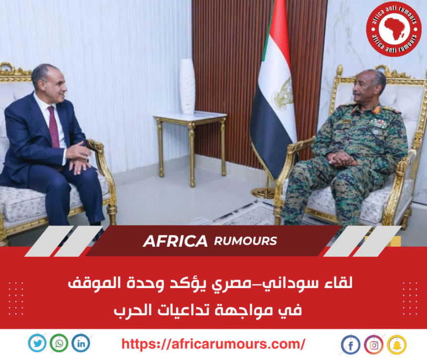 إفريقيا لمكافحة الشائعات > الأخبار > اخبار افريقيا > لقاء سوداني–مصري يؤكد وحدة الموقف في مواجهة تداعيات الحرب ..