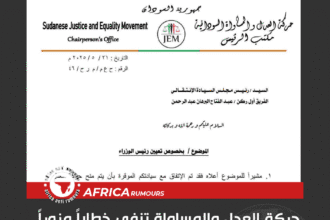 حركة العدل والمساواة تنفي خطابًا مزورًا وتؤكد دعمها للدكتور كامل إدريس